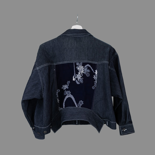 Dual-Wear Harmony Female Yukata Denim Jacket - Loyal Midnight